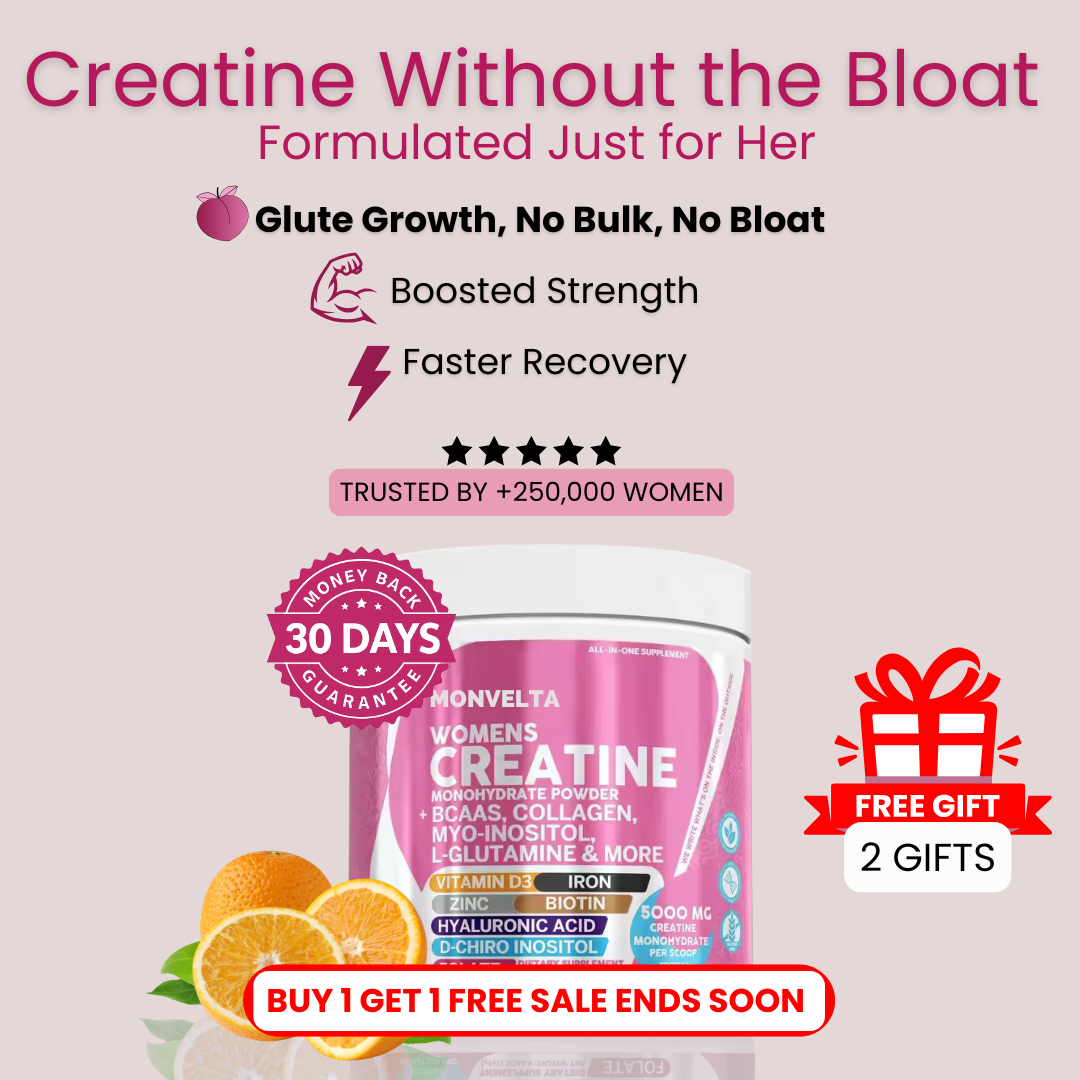 Not at all. Our Women's creatine uses a low-water-retention creatine blend that fuels muscle tone without puffiness or bulk. You’ll build a firmer, rounder, more lifted shape not size